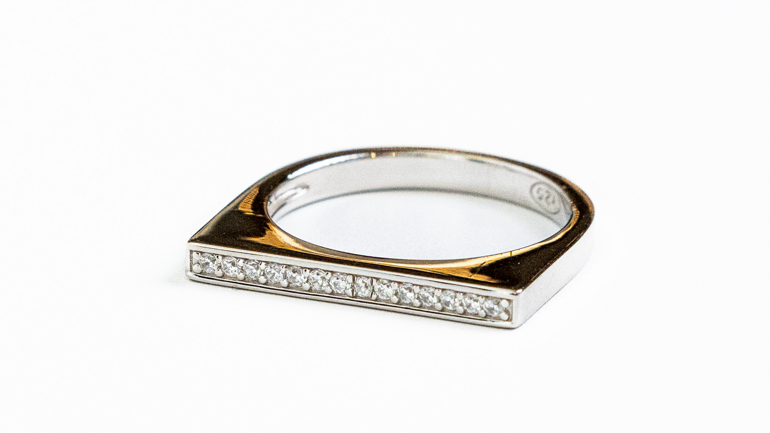 Angled Silver Band Sharp-edge silver band with a clean geometric design.