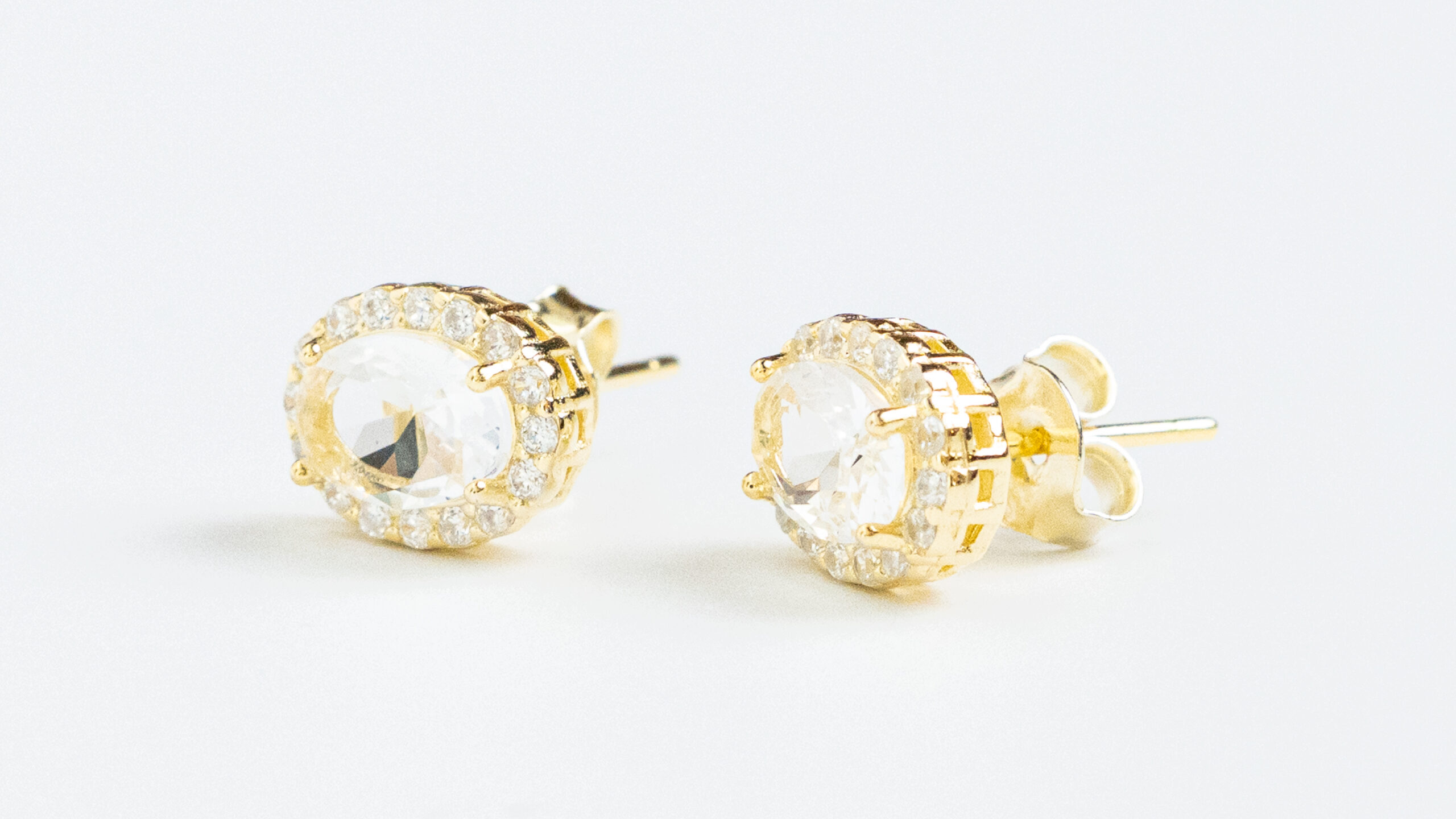 Clear Gem Round Studs Silver925 Goldplated Large round clear stones in classic setting.