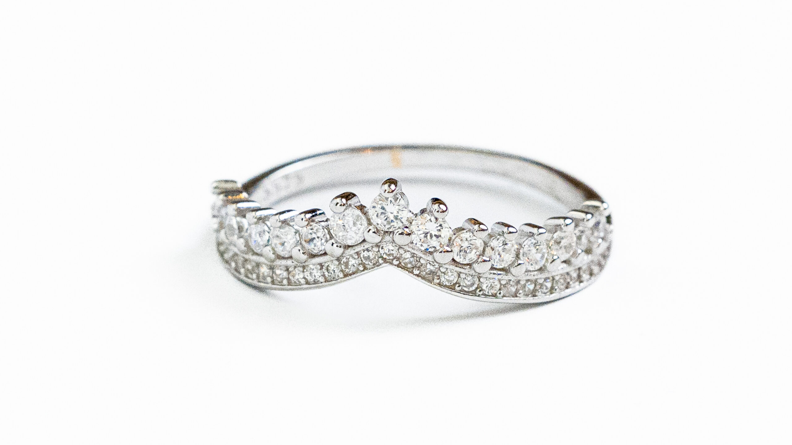 Delicate silver tiara-style ring adirbed wuth sunnerubg stones perfect for a graceful touch of sparkle