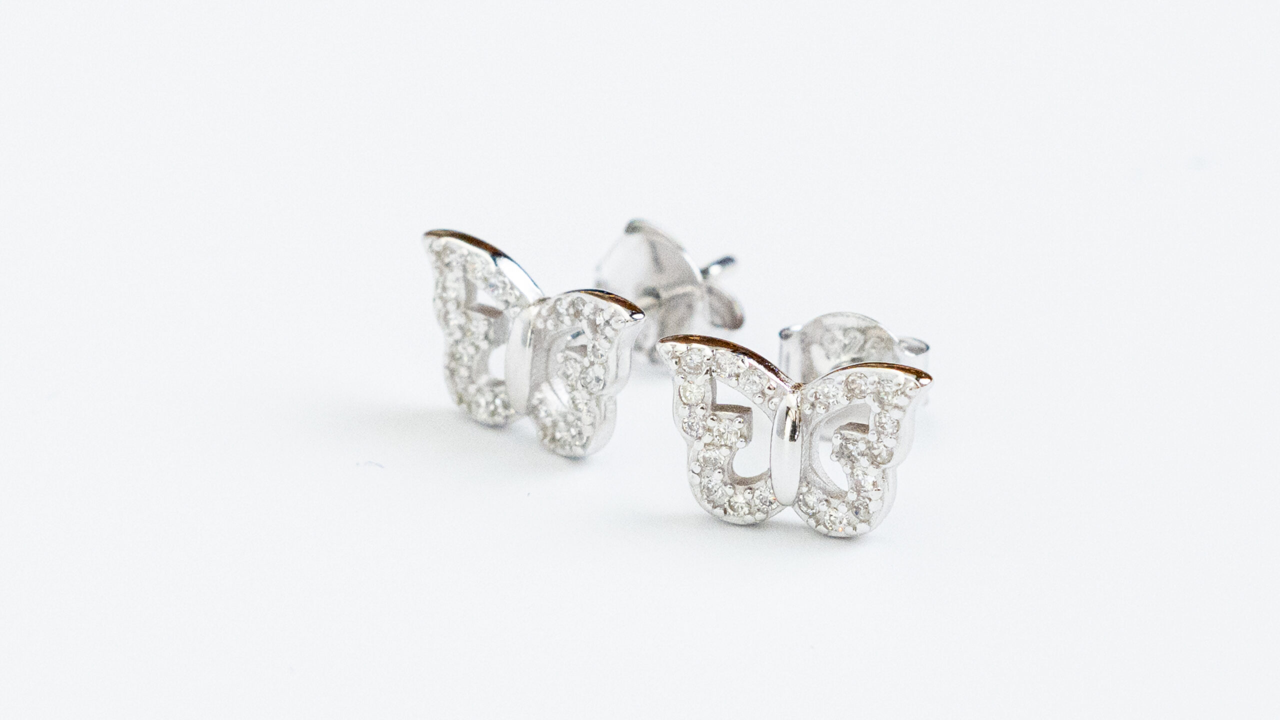 Silver 925 Butterfly earrings Butterfly shaped silver earrings with clear zircons on both sides
