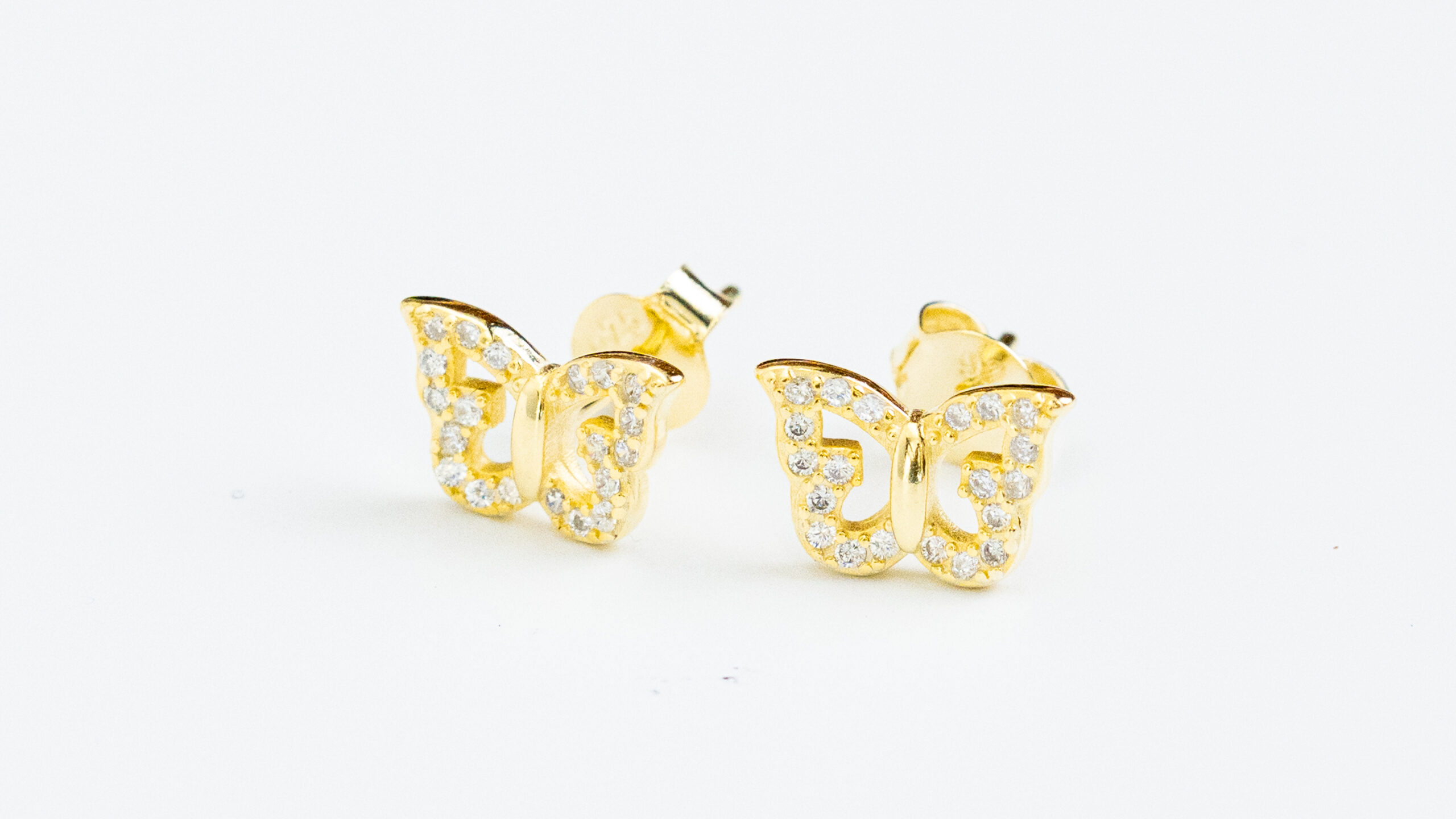 Silver 925 Goldplated Butterfly earrings Butterfly shaped silver earrings with clear zircons on both sides