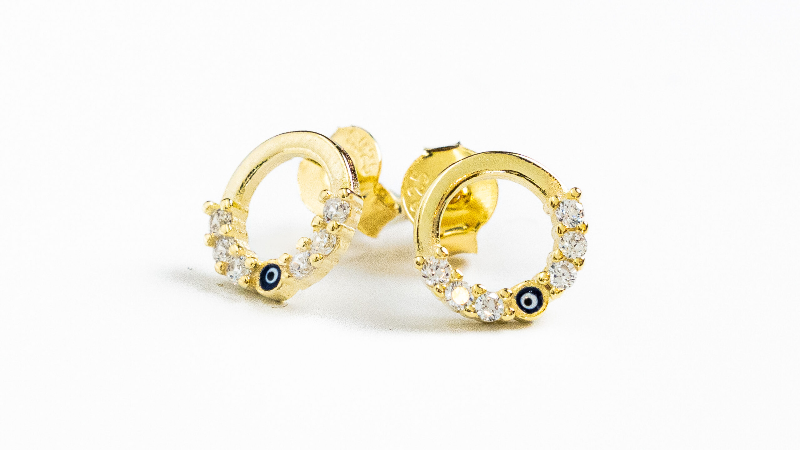 Silver 925 Goldplated Circle Studs Small hoop-like studs with clear zircons inset and “eye” between the stones