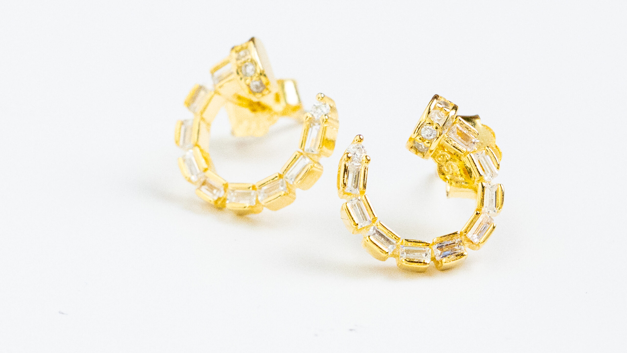 Silver 925 Goldplated Hoop Studs Mini silver hoops with square clear zirons detail.