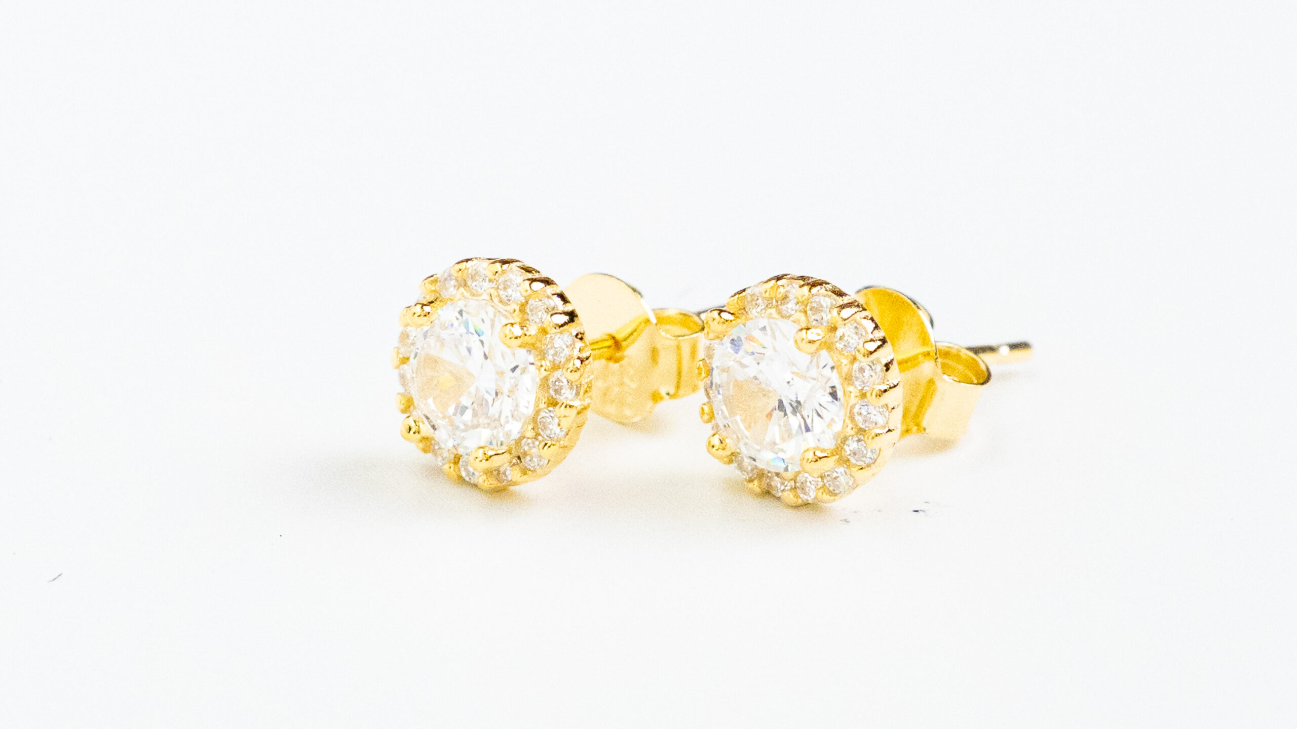 Silver 925 Goldplated Sunburst StudsRound center with radiating gem “rays.”