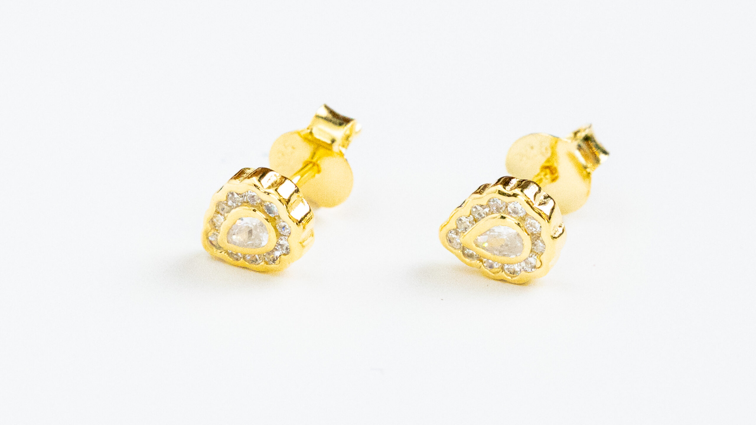Silver 925 Goldplated tear shaped Studs Tear shaped earrings with clear tone zircons
