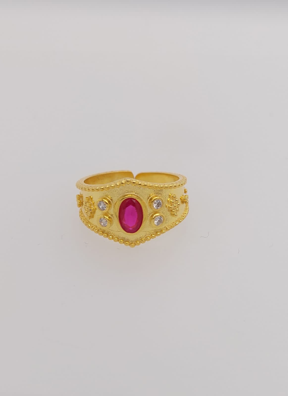 Silver 925 Goldplated with 18K ring with ruby zircon– Central Ruby zircon set in a smooth gold band.