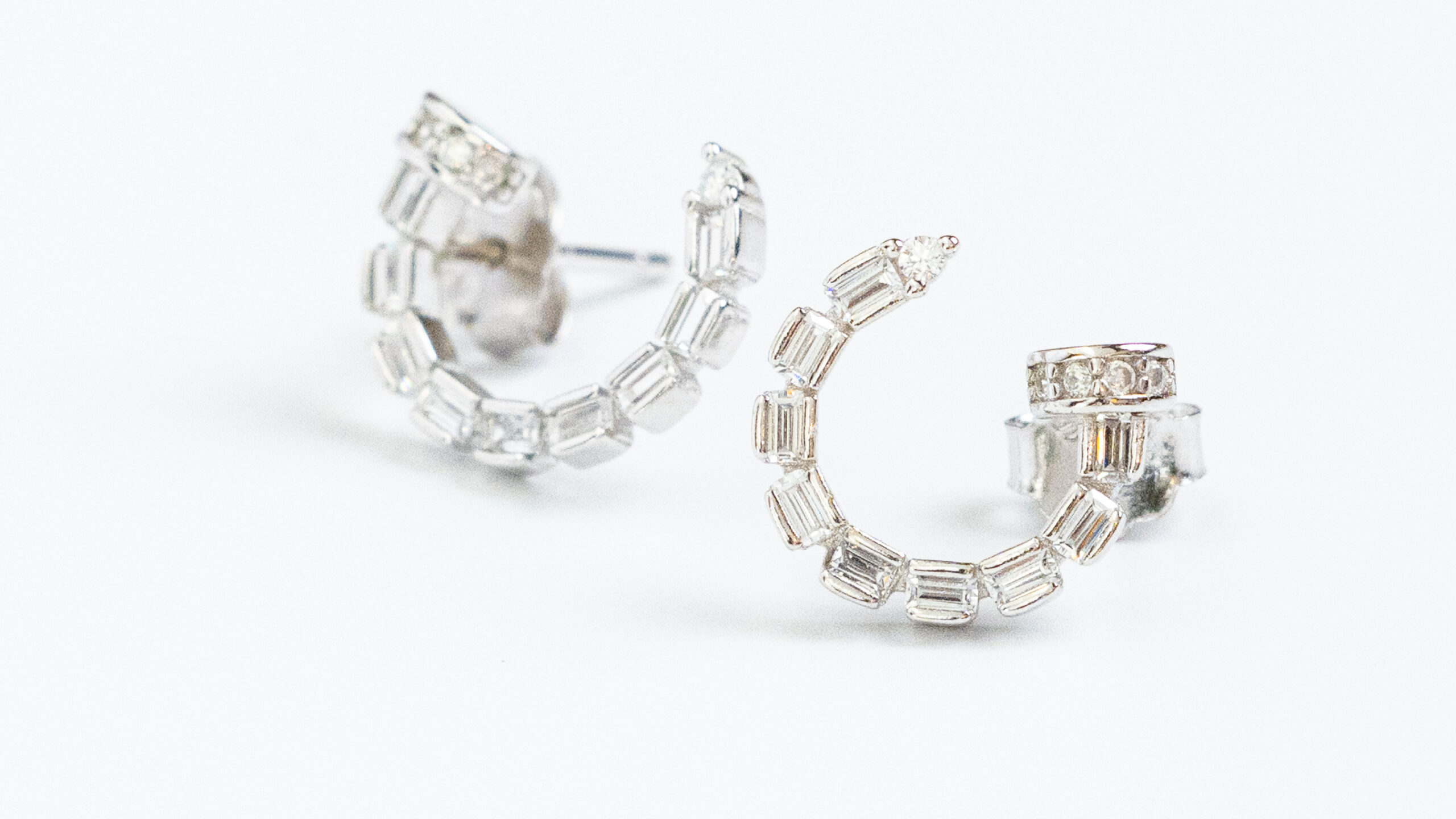 Mini silver hoops with square clear zirons detail.